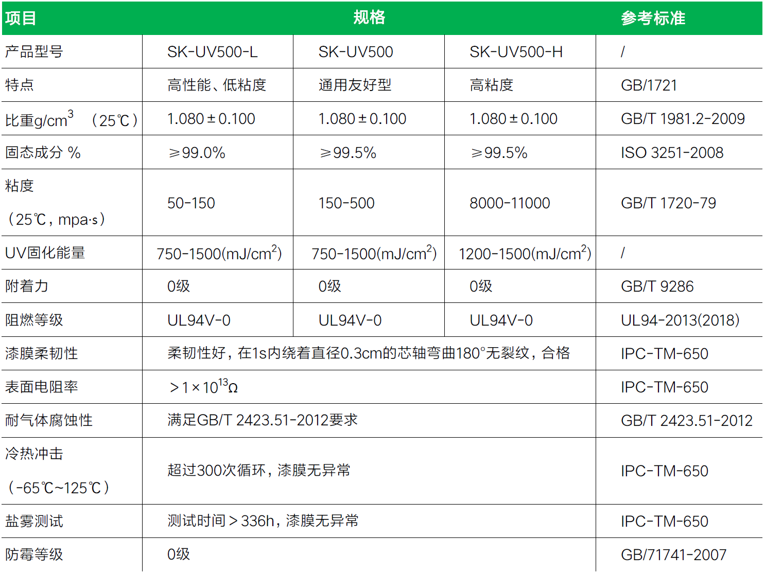 該系列的UV三防膠可涂敷在印刷電路板及零組件上,當可能受到操作環(huán)境不利因素影響時(shí),可以降低或消除電子操作性能衰退狀況。使用過(guò)三防膠的PCB線(xiàn)路板具有防潮、防鹽霧、防霉“三防”性能和耐冷熱沖擊、耐老化、耐臭氧腐蝕、耐振動(dòng)等特性,從而提高線(xiàn)路板的可靠性,增加其安全系數,并保證其使用壽命。另外,由于本三防膠可防止漏電,因此允許更高的功率和更近的印制板間距,從而滿(mǎn)足元件小型化的目的,兼具快干、低氣味、環(huán)保等特點(diǎn),能有效提升客戶(hù)生產(chǎn)效率和品質(zhì)。