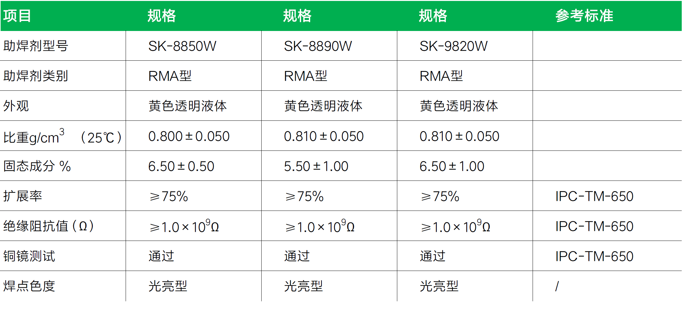 適用工藝:噴霧、粘浸涂布,可適用于單波峰作業(yè)。